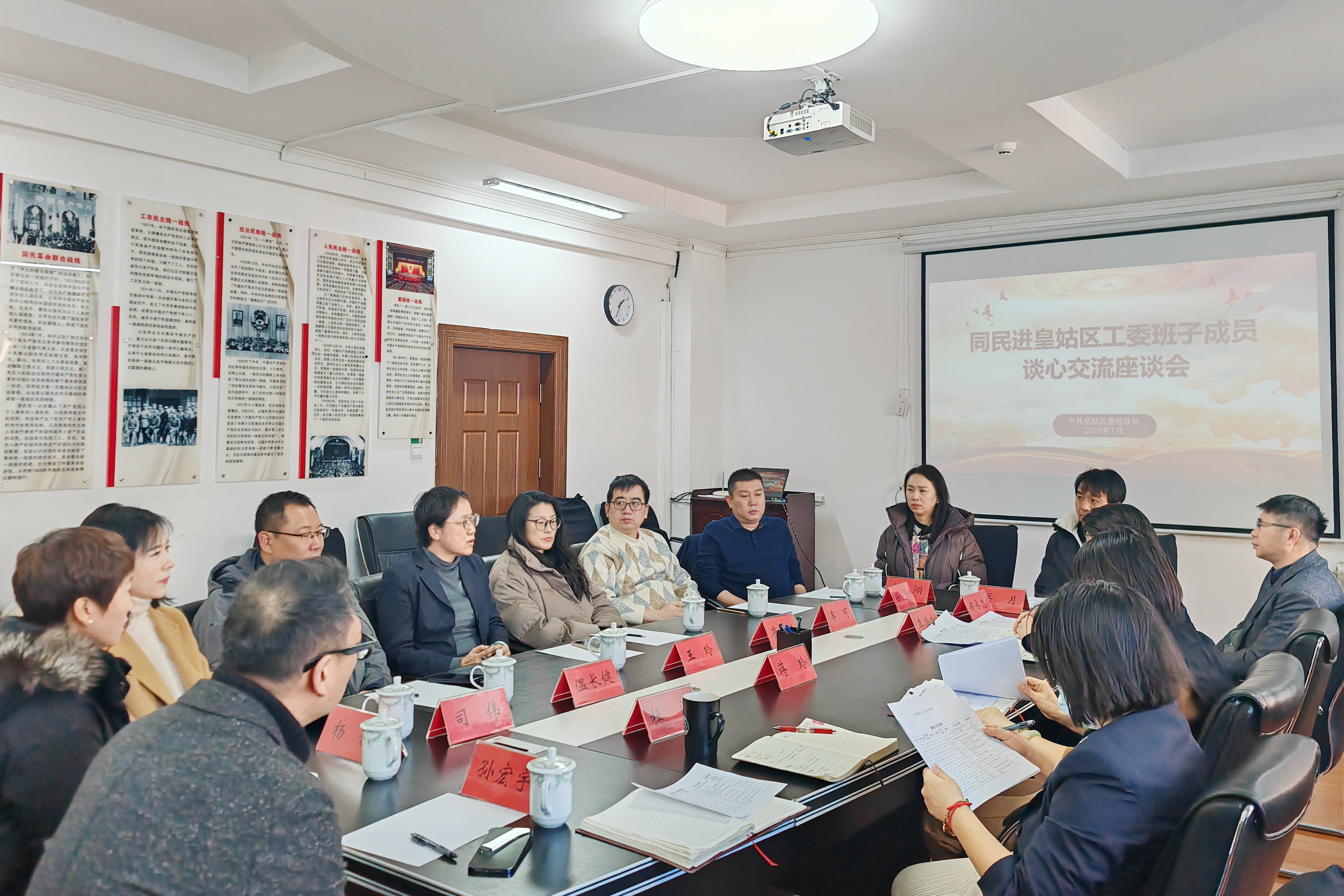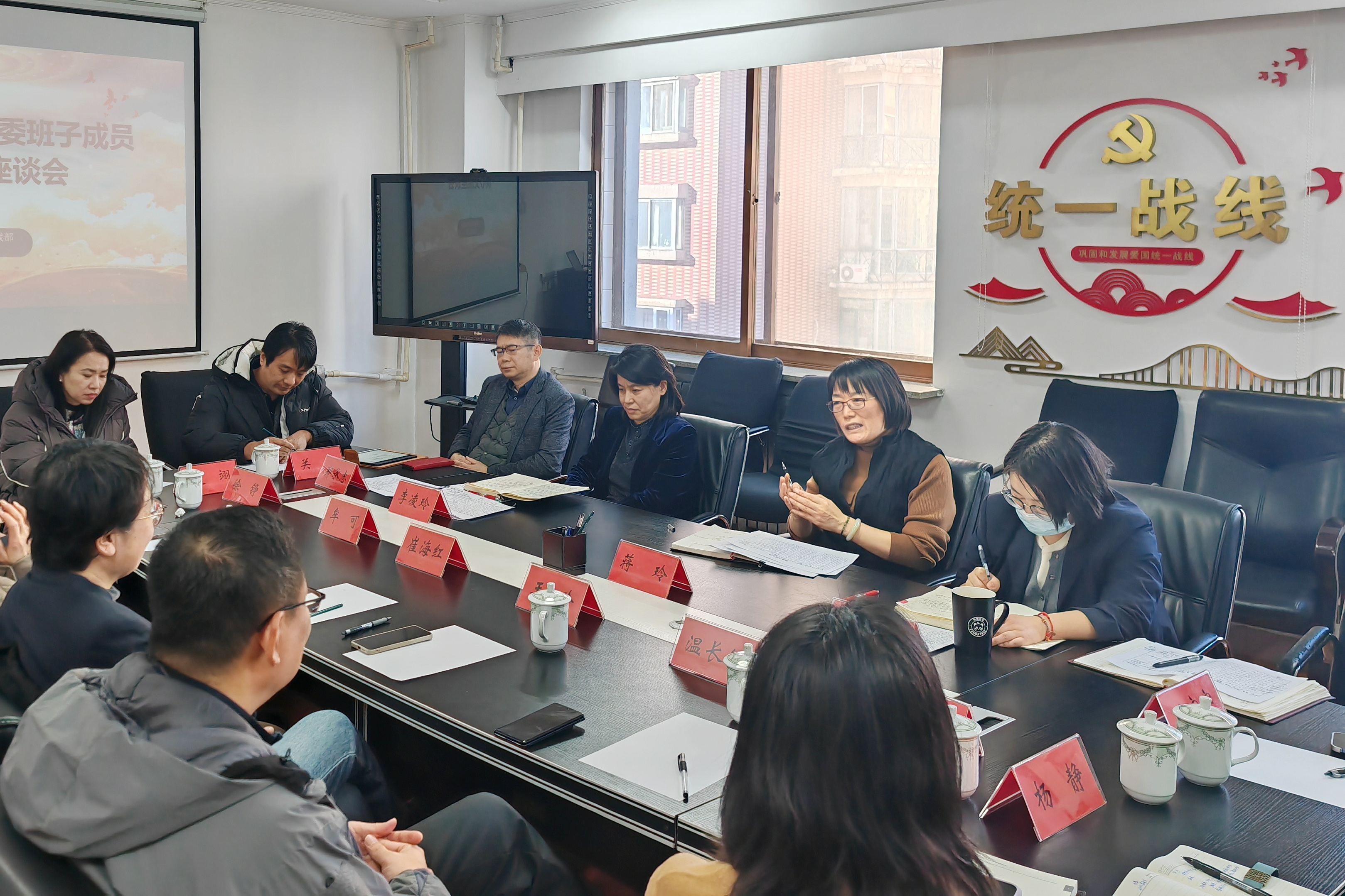 为深入贯彻落实习近平总书记关于加强和改进统一战线工作的重要思想,进一步凝聚思想政治共识,广泛吸纳党外人士意见建议,助力民进皇姑区工委新一届班子更好履行参政党职能,充分彰显教育、文化、科技领域界别优势,1月7日,中共皇姑区委统战部与民进皇姑区工委召开交流座谈会。统战部副部长蒋玲、统战中心主任李凌玲、民进皇姑区工委新一届领导班子成员及部分会员参加会议。会议由统战部党派人士科科长杜闯主持。