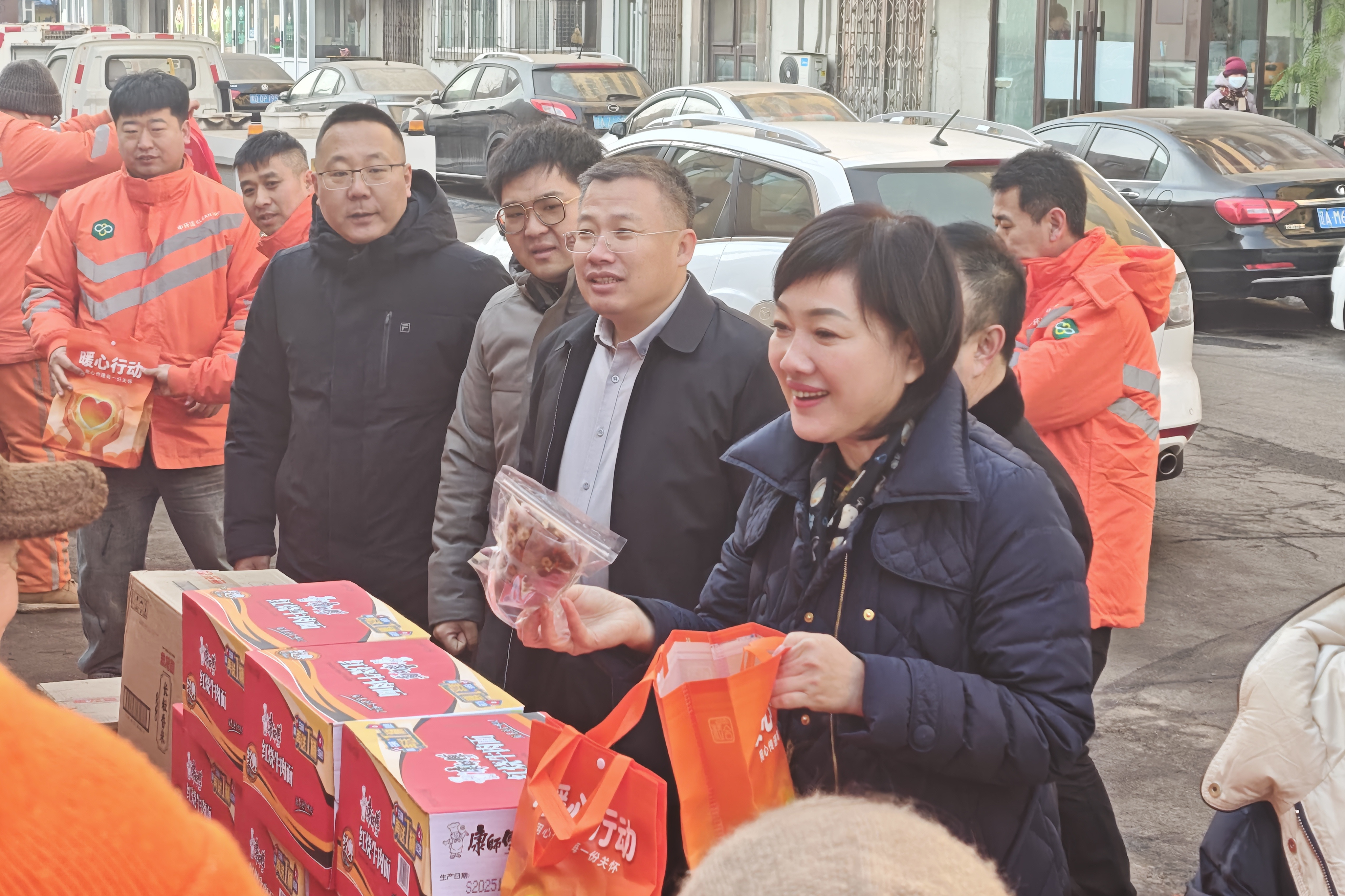活动现场暖意融融,孔颖代表民进组织向一线环卫工人致以新春的诚挚祝福,并送去精心筹备的环卫暖心包、米、油、方便食品等实用物资,叮嘱他们在户外作业时务必注意自身安全,做好防寒防护措施。
