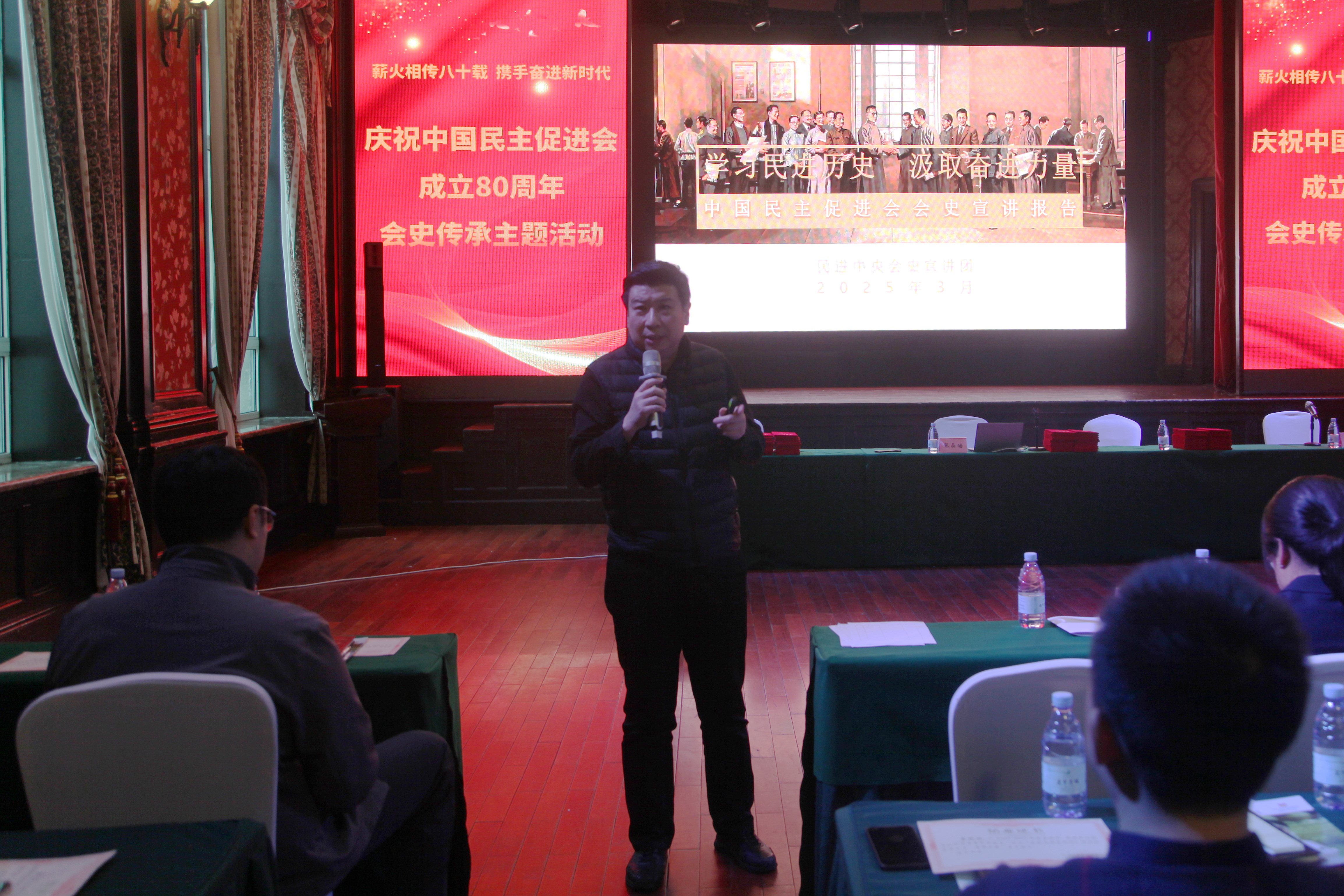 活动现场,民进中央会史宣讲团成员、民进辽宁省委会二级调研员张晶皓进行精彩授课,他以详实史料生动讲述,带领100余名会员重温民进与中国共产党同心同德、携手奋进的峥嵘岁月。